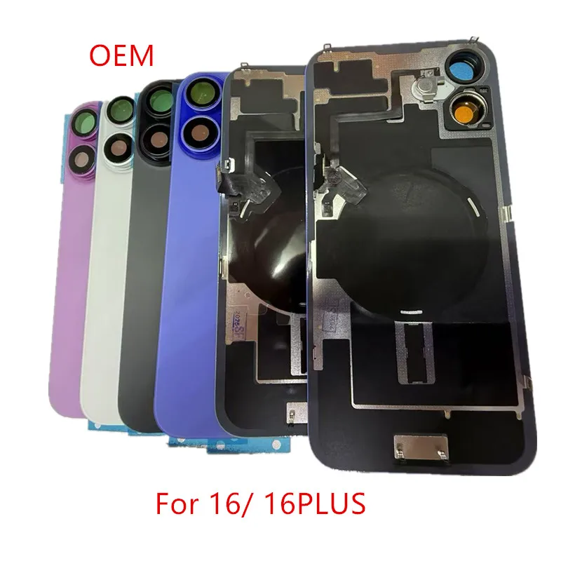 For iPhone 16 Pro Max 16 Plus 16Pro Back Glass Cover Rear Case Door Housing with Wireless Flex Cable Metal Plate Replacement